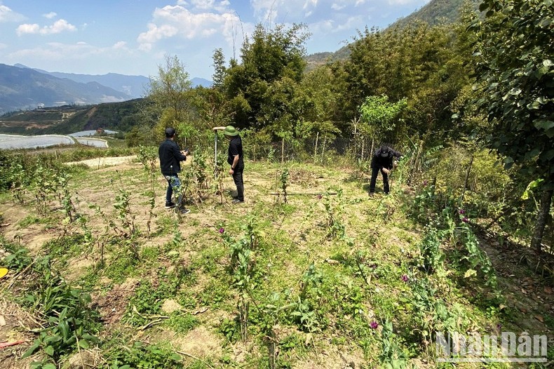 Trước đó, vào khoảng 10 giờ ngày 23/3, trong khi thực hiện việc tuần tra, kiểm soát địa bàn, Tổ công tác của Đội điều tra tổng hợp, Công an thị xã Sa Pa phối hợp với Công an xã Trung Chải và Công an phường Sa Pa phát hiện tại vườn của đối tượng Má Thị Phính, sinh năm 1973, trú tại thôn Chu Lìn 1, xã Trung Chải, thị xã Sa Pa có trồng trái phép nhiều cây thuốc phiện.