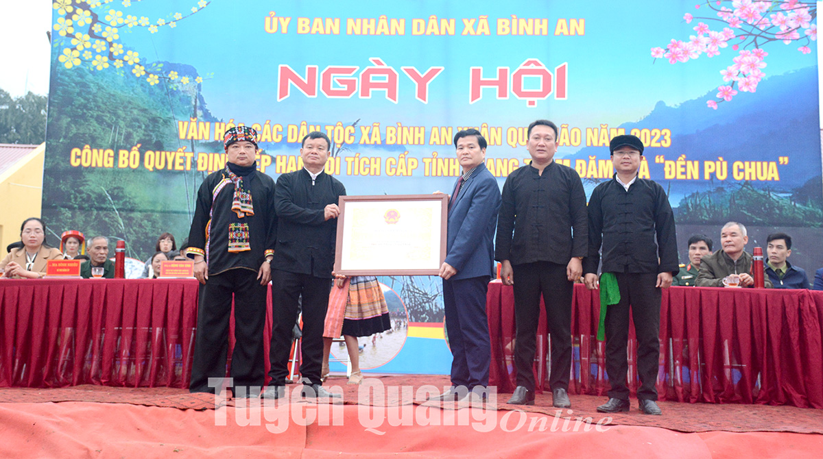 Lãnh đạo huyện Lâm Bình trao Quyết định xếp hạng di tích cấp tỉnh hang Thẳm Đăm và đền Pù Chua cho xã Bình An.